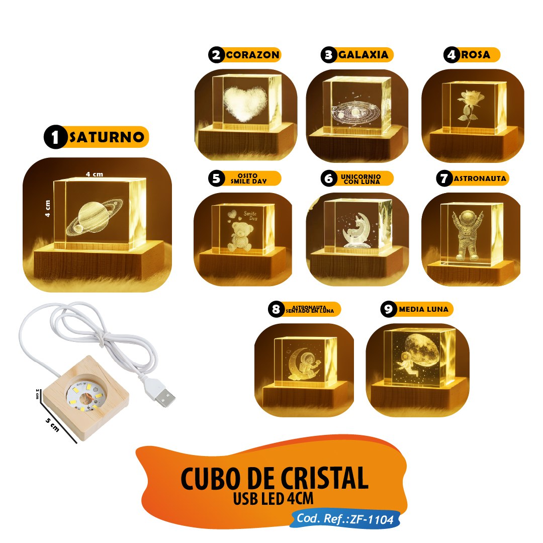Cubo de Cristal USB LED 4cm